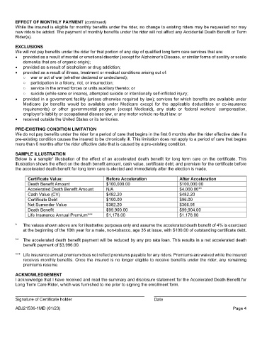 new riders be added. The payment of monthly benefits under the rider will not affect any Accidental Death Benefit or Term