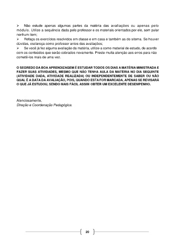 ➢ Não estude apenas algumas partes da matéria das avaliações ou apenas pelo