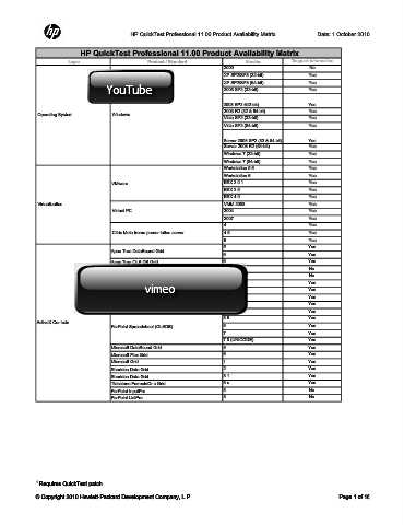 HP QuickTest Professional 11.00 Product Availability Matrix