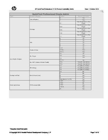 HP QuickTest Professional 11.00 Product Availability Matrix Date: 1 October 2010