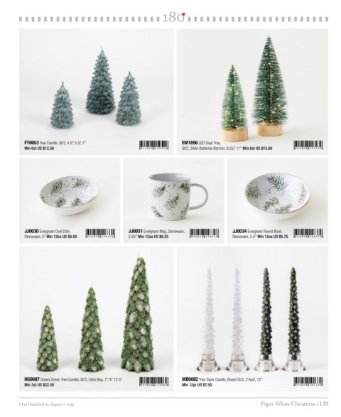 HG0087 Snowy Green Tree Candle, St/3, Cello Bag, 7," 9," 12.5" *844828-BFBAGJ* MB0082 Tree Taper Candle, Boxed St/2, 2 Asst, 12" *844828-BABDDA*