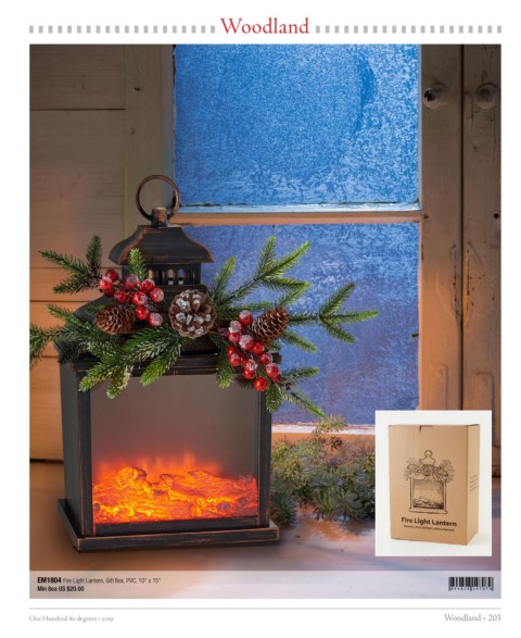W oodland EM1804 Fire Light Lantern, Gift Box, PVC, 10" x 15" *844828-BEHAHJ* Min 8ea US $20.00 One Hundred degrees • Woodland • 203