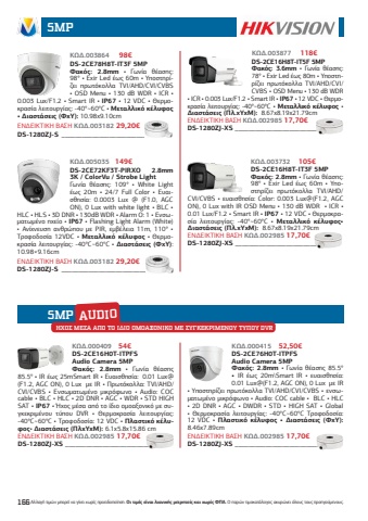 5MPDS-2CE16H8T-IT3F 5MP%u03a6%u03b1%u03ba%u03cc%u03c2: 2.8mm %u2022 %u0393%u03c9%u03bd%u03af%u03b1 %u03b8%u03ad%u03b1%u03c3%u03b7%u03c2: 98%u00b0 %u2022 Exir Led %u03ad%u03c9%u03c2 60m %u2022 %u03a5%u03c0%u03bf%u03c3%u03c4%u03b7%u03c1%u03af%u03b6%u03b5%u03b9 %u03c0%u03c1%u03c9%u03c4%u03cc%u03ba%u03bf%u03bb%u03bb%u03b1 TVI/AHD/CVI/CVBS %u2022 %u03b5%u03c5%u03b1%u03b9%u03c3%u03b8%u03b7%u03c3%u03af%u03b1: Color: 0.003 Lux@(F1.2, AGC ON), 0 Lux with IR OSD Menu %u2022 130 dB WDR %u2022 ICR %u20220.01 Lux/F1.2 %u2022 Smart IR %u2022 IP67 %u2022 12 VDC %u2022 %u0398%u03b5%u03c1%u03bc%u03bf%u03ba%u03c1%u03b1%u03c3%u03af%u03b1 %u03bb%u03b5%u03b9%u03c4%u03bf%u03c5%u03c1%u03b3%u03af%u03b1%u03c2: -40%u00b0~60%u00b0C %u2022 %u039c%u03b5%u03c4%u03b1%u03bb%u03bb%u03b9%u03ba%u03cc %u03ba%u03ad%u03bb%u03c5%u03c6%u03bf%u03c2%u2022%u0394%u03b9%u03b1%u03c3%u03c4%u03ac%u03c3%u03b5%u03b9%u03c2 (%u03a0%u03bb.xYxM): 8.67x8.19x21.79cm%u0395%u039d%u0394%u0395%u0399%u039a%u03a4%u0399%u039a%u0397 %u0392%u0391%u03a3%u0397 %u039a%u03a9%u0394.002985 17,70%u20acDS-1280ZJ-XS _____________________________%u039a%u03a9%u0394.003732%u0009 105%u20acDS-2CE72KF3T-PIRXO 2.8mm3K / ColorVu / Strobe Light%u0393%u03c9%u03bd%u03af%u03b1 %u03b8%u03ad%u03b1%u03c3%u03b7%u03c2: 109%u00b0 %u2022 White Light %u03ad%u03c9%u03c2 20m %u2022 24/7 Full Color %u2022 %u0395%u03c5%u03b1%u03b9%u03c3%u03b8%u03b7%u03c3%u03af%u03b1: 0.0003 Lux @ (F1.0, AGC ON), 0 Lux with white light %u2022 BLC %u2022 HLC %u2022 HLS %u2022 3D DNR %u2022 130dB WDR %u2022 Alarm O: 1 %u2022 %u0395%u03bd%u03c3%u03c9%u03bc%u03b1%u03c4%u03c9%u03bc%u03ad%u03bd%u03bf %u03b7%u03c7%u03b5%u03af%u03bf %u2022 IP67 %u2022 Flashing Light Alarm (White) %u2022 %u0391%u03bd%u03af%u03c7%u03bd%u03b5%u03c5%u03c3%u03b7 %u03b1%u03bd%u03b8%u03c1%u03ce%u03c0%u03bf%u03c5 %u03bc%u03b5 PIR, %u03b5%u03bc%u03b2%u03ad%u03bb%u03b5%u03b9%u03b1 11m, 110%u00b0 %u2022 %u03a4%u03c1%u03bf%u03c6%u03bf%u03b4%u03bf%u03c3%u03af%u03b1 12VDC %u2022 %u039c%u03b5%u03c4%u03b1%u03bb%u03bb%u03b9%u03ba%u03cc %u03ba%u03ad%u03bb%u03c5%u03c6%u03bf%u03c2 %u2022 %u0398%u03b5%u03c1%u03bc%u03bf%u03ba%u03c1%u03b1%u03c3%u03af%u03b1 %u03bb%u03b5%u03b9%u03c4%u03bf%u03c5%u03c1%u03b3%u03af%u03b1%u03c2: -40%u00b0C~60%u00b0C %u2022 %u0394%u03b9%u03b1%u03c3%u03c4%u03ac%u03c3%u03b5%u03b9%u03c2 (%u03a6x%u03a5): 10.98%u00d79.16cm%u0395%u039d%u0394%u0395%u0399%u039a%u03a4%u0399%u039a%u0397 %u0392%u0391%u03a3%u0397 %u039a%u03a9%u0394.003182 29,20%u20acDS-1280ZJ-S ____________________________%u039a%u03a9%u0394.005035 149%u20ac%u039a%u03a9%u0394.000415%u0009 52,50%u20acDS-2CE76H0T-ITPFSAudio Camera 5MP%u03a6%u03b1%u03ba%u03cc%u03c2: 2.8mm %u2022 %u0393%u03c9%u03bd%u03af%u03b1 %u03b8%u03ad%u03b1%u03c3%u03b7%u03c2 85.5%u00b0%u2022 IR %u03ad%u03c9%u03c2 20m\\Smart IR %u2022 %u03b5%u03c5%u03b1%u03b9%u03c3%u03b8%u03b7%u03c3%u03af%u03b1: 0.01 Lux@(F1.2, AGC ON), 0 Lux %u03bc%u03b5 IR%u2022 %u03a5%u03c0%u03bf%u03c3%u03c4%u03b7%u03c1%u03af%u03b6%u03b5%u03b9 %u03c0%u03c1%u03c9%u03c4%u03cc%u03ba%u03bf%u03bb%u03bb%u03b1 TVI/AHD/CVI/CVBS %u2022 %u03b5%u03bd%u03c3%u03c9%u03bc%u03b1%u03c4%u03c9%u03bc%u03ad%u03bd%u03bf %u03bc%u03b9%u03ba%u03c1%u03cc%u03c6%u03c9%u03bd%u03bf %u2022 Audio: COC cable %u2022 BLC %u2022 HLC%u2022 2D DNR %u2022 AGC %u2022 DWDR %u2022 STD %u2022 HIGH SAT %u2022 Global%u2022 %u0398%u03b5%u03c1%u03bc%u03bf%u03ba%u03c1%u03b1%u03c3%u03af%u03b1 %u03bb%u03b5%u03b9%u03c4%u03bf%u03c5%u03c1%u03b3%u03af%u03b1%u03c2: -40%u00b0C~60%u00b0C T%u03c1%u03bf%u03c6%u03bf%u03b4%u03bf%u03c3%u03af%u03b1: 12 VDC %u2022 %u03a0%u03bb%u03b1%u03c3%u03c4%u03b9%u03ba%u03cc %u03ba%u03ad%u03bb%u03c5%u03c6%u03bf%u03c2 %u2022 %u0394%u03b9%u03b1%u03c3%u03c4%u03ac%u03c3%u03b5%u03b9%u03c2 (%u03a6%u03c7%u03a5):8.46x7.89cm%u0395%u039d%u0394%u0395%u0399%u039a%u03a4%u0399%u039a%u0397 %u0392%u0391%u03a3%u0397 %u039a%u03a9%u0394.002985 17,70%u20acDS-1280ZJ-%u03a7S ___________________________DS-2CE16H0T-ITPFSAudio Camera 5MP%u03a6%u03b1%u03ba%u03cc%u03c2: 2.8mm %u2022 %u0393%u03c9%u03bd%u03af%u03b1 %u03b8%u03ad%u03b1%u03c3%u03b7%u03c2 85.5%u00b0 %u2022 IR %u03ad%u03c9%u03c2 25mSmart IR %u2022 E%u03c5%u03b1%u03b9%u03c3%u03b8%u03b7%u03c3%u03af%u03b1: 0.01 Lux@(F1.2, AGC ON), 0 Lux %u03bc%u03b5 IR %u2022 %u03a0%u03c1%u03c9%u03c4%u03cc%u03ba%u03bf%u03bb%u03bb%u03b1: TVI/AHD/CVI/CVBS %u2022 %u0395%u03bd%u03c3%u03c9%u03bc%u03b1%u03c4%u03c9%u03bc%u03ad%u03bd%u03bf %u03bc%u03b9%u03ba%u03c1%u03cc%u03c6%u03c9%u03bd%u03bf %u2022 Audio: COC cable %u2022 BLC %u2022 HLC %u2022 2D DNR %u2022 AGC %u2022 WDR %u2022 STD HIGH SAT %u2022 IP67 %u2022 %u0389%u03c7%u03bf%u03c2 %u03bc%u03ad%u03c3%u03b1 %u03b1%u03c0%u03cc %u03c4%u03bf %u03af%u03b4%u03b9%u03bf %u03bf%u03bc%u03bf%u03b1%u03be%u03bf%u03bd%u03b9%u03ba%u03cc %u03bc%u03b5 %u03c3%u03c5%u03b3%u03ba%u03b5%u03ba%u03c1%u03b9%u03bc%u03ad%u03bd%u03bf%u03c5 %u03c4%u03cd%u03c0%u03bf%u03c5 DVR %u2022 %u0398%u03b5%u03c1%u03bc%u03bf%u03ba%u03c1%u03b1%u03c3%u03af%u03b1 %u03bb%u03b5%u03b9%u03c4%u03bf%u03c5%u03c1%u03b3%u03af%u03b1%u03c2: -40%u00b0C~60%u00b0C %u2022 %u03a4%u03c1%u03bf%u03c6%u03bf%u03b4%u03bf%u03c3%u03af%u03b1: 12 VDC %u2022 %u03a0%u03bb%u03b1%u03c3%u03c4%u03b9%u03ba%u03cc %u03ba%u03ad%u03bb%u03c5%u03c6%u03bf%u03c2%u2022 %u0394%u03b9%u03b1%u03c3%u03c4%u03ac%u03c3%u03b5%u03b9%u03c2 (%u03a0%u03bbxYxM): 6.1x5.8x15.86 cm%u0395%u039d%u0394%u0395%u0399%u039a%u03a4%u0399%u039a%u0397 %u0392%u0391%u03a3%u0397 %u039a%u03a9%u0394.002985 17,70%u20acDS-1280ZJ-%u03a7S ___________________________%u039a%u03a9%u0394.000409%u0009 54%u20ac%u039a%u03a9%u0394.003864 98%u20acDS-2CE78H8T-IT3F 5MP%u03a6%u03b1%u03ba%u03cc%u03c2: 2.8mm %u2022 %u0393%u03c9%u03bd%u03af%u03b1 %u03b8%u03ad%u03b1%u03c3%u03b7%u03c2: 98%u00b0 %u2022 Exir Led %u03ad%u03c9%u03c2 60m %u2022 %u03a5%u03c0%u03bf%u03c3%u03c4%u03b7%u03c1%u03af%u03b6%u03b5%u03b9 %u03c0%u03c1%u03c9%u03c4%u03cc%u03ba%u03bf%u03bb%u03bb%u03b1 TVI/AHD/CVI/CVBS%u2022 OSD Menu %u2022 130 dB WDR %u2022 ICR %u20220.003 Lux/F1.2 %u2022 Smart IR %u2022 IP67 %u2022 12 VDC %u2022 %u0398%u03b5%u03c1%u03bc%u03bf%u03ba%u03c