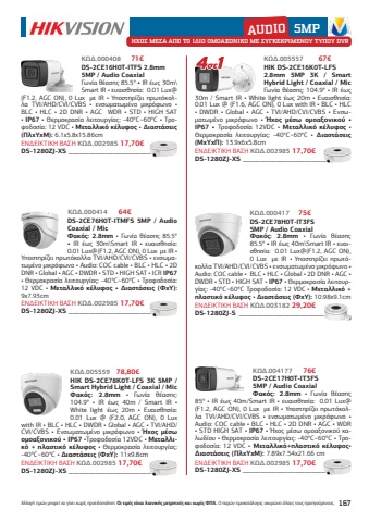 DS-2CE76H0T-ITMFS 5MP / AudioCoaxial / Mic%u03a6%u03b1%u03ba%u03cc%u03c2: 2.8mm %u2022 %u0393%u03c9%u03bd%u03af%u03b1 %u03b8%u03ad%u03b1%u03c3%u03b7%u03c2 85.5%u00b0%u2022 IR %u03ad%u03c9%u03c2 30m\\Smart IR %u2022 %u03b5%u03c5%u03b1%u03b9%u03c3%u03b8%u03b7%u03c3%u03af%u03b1: 0.01 Lux@(F1.2, AGC ON), 0 Lux %u03bc%u03b5 IR %u2022%u03a5%u03c0%u03bf%u03c3%u03c4%u03b7%u03c1%u03af%u03b6%u03b5%u03b9 %u03c0%u03c1%u03c9%u03c4%u03cc%u03ba%u03bf%u03bb%u03bb%u03b1 TVI/AHD/CVI/CVBS %u2022 %u03b5%u03bd%u03c3%u03c9%u03bc%u03b1%u03c4%u03c9%u03bc%u03ad%u03bd%u03bf %u03bc%u03b9%u03ba%u03c1%u03cc%u03c6%u03c9%u03bd%u03bf %u2022 Audio: COC cable %u2022 BLC %u2022 HLC %u2022 2D DNR %u2022 Global %u2022 AGC %u2022 DWDR %u2022 STD %u2022 HIGH SAT %u2022 ICR IP67%u2022 %u0398%u03b5%u03c1%u03bc%u03bf%u03ba%u03c1%u03b1%u03c3%u03af%u03b1 %u03bb%u03b5%u03b9%u03c4%u03bf%u03c5%u03c1%u03b3%u03af%u03b1%u03c2: -40%u00b0C~60%u00b0C %u2022 %u03a4%u03c1%u03bf%u03c6%u03bf%u03b4%u03bf%u03c3%u03af%u03b1: 12 VDC %u2022 %u039c%u03b5%u03c4%u03b1%u03bb%u03bb%u03b9%u03ba%u03cc %u03ba%u03ad%u03bb%u03c5%u03c6%u03bf%u03c2 %u2022 %u0394%u03b9%u03b1%u03c3%u03c4%u03ac%u03c3%u03b5%u03b9%u03c2 (%u03a6%u03c7%u03a5):9%u03c77.93cm%u0395%u039d%u0394%u0395%u0399%u039a%u03a4%u0399%u039a%u0397 %u0392%u0391%u03a3%u0397 %u039a%u03a9%u0394.002985 17,70%u20acDS-1280ZJ-%u03a7S ___________________________%u039a%u03a9%u0394.000414%u0009 64%u20acHIK DS-2CE16K0T-LFS2.8mm 5MP 3K / SmartHybrid Light / Coaxial / Mic%u0393%u03c9%u03bd%u03af%u03b1 %u03b8%u03ad%u03b1%u03c3%u03b7%u03c2: 104.9%u00b0 %u2022 IR %u03ad%u03c9%u03c2 30m / Smart IR %u2022 White light %u03ad%u03c9%u03c2 20m %u2022 %u0395%u03c5%u03b1%u03b9%u03c3%u03b8%u03b7%u03c3%u03af%u03b1: 0.01 Lux @ (F1.6, AGC ON), 0 Lux with IR %u2022 BLC %u2022 HLC %u2022 DWDR %u2022 Global %u2022 AGC %u2022 TVI/AHD/CVI/CVBS %u2022 %u0395%u03bd%u03c3%u03c9%u03bc%u03b1%u03c4%u03c9%u03bc%u03ad%u03bd%u03bf %u03bc%u03b9%u03ba%u03c1%u03cc%u03c6%u03c9%u03bd%u03bf %u2022 %u0389%u03c7%u03bf%u03c2 %u03bc%u03ad%u03c3%u03c9 %u03bf%u03bc%u03bf%u03b1%u03be%u03bf%u03bd%u03b9%u03ba%u03bf%u03cd %u2022IP67 %u2022 %u03a4%u03c1%u03bf%u03c6%u03bf%u03b4%u03bf%u03c3%u03af%u03b1 12VDC %u2022 %u039c%u03b5%u03c4%u03b1%u03bb%u03bb%u03b9%u03ba%u03cc %u03ba%u03ad%u03bb%u03c5%u03c6%u03bf%u03c2 %u2022 %u0398%u03b5%u03c1%u03bc%u03bf%u03ba%u03c1%u03b1%u03c3%u03af%u03b1 %u03bb%u03b5%u03b9%u03c4%u03bf%u03c5%u03c1%u03b3%u03af%u03b1%u03c2: -40%u00b0C~60%u00b0C %u2022 %u0394%u03b9%u03b1%u03c3%u03c4%u03ac%u03c3%u03b5%u03b9%u03c2(%u039cx%u03a5x%u03a0): 13.9x6x5.8cm%u0395%u039d%u0394%u0395%u0399%u039a%u03a4%u0399%u039a%u0397 %u0392%u0391%u03a3%u0397 %u039a%u03a9%u0394.002985 17,70%u20acDS-1280ZJ-XS _________________________%u039a%u03a9%u0394.000408%u0009 71%u20ac %u039a%u03a9%u0394.005557%u0009 67%u20acDS-2CE16H0T-ITFS 2.8mm5MP / Audio Coaxial%u0393%u03c9%u03bd%u03af%u03b1 %u03b8%u03ad%u03b1%u03c3%u03b7%u03c2 85.5%u00b0 %u2022 IR %u03ad%u03c9%u03c2 30m\\Smart IR %u2022 %u03b5%u03c5%u03b1%u03b9%u03c3%u03b8%u03b7%u03c3%u03af%u03b1: 0.01 Lux@(F1.2, AGC ON), 0 Lux %u03bc%u03b5 IR %u2022 %u03a5%u03c0%u03bf%u03c3%u03c4%u03b7%u03c1%u03af%u03b6%u03b5%u03b9 %u03c0%u03c1%u03c9%u03c4%u03cc%u03ba%u03bf%u03bb%u03bb%u03b1 TVI/AHD/CVI/CVBS %u2022 %u03b5%u03bd%u03c3%u03c9%u03bc%u03b1%u03c4%u03c9%u03bc%u03ad%u03bd%u03bf %u03bc%u03b9%u03ba%u03c1%u03cc%u03c6%u03c9%u03bd%u03bf %u2022BLC %u2022 HLC %u2022 2D DNR %u2022 AGC WDR %u2022 STD %u2022 HIGH SAT%u2022 IP67 %u2022 %u0398%u03b5%u03c1%u03bc%u03bf%u03ba%u03c1%u03b1%u03c3%u03af%u03b1 %u03bb%u03b5%u03b9%u03c4%u03bf%u03c5%u03c1%u03b3%u03af%u03b1%u03c2: -40%u00b0C~60%u00b0C %u2022 %u03a4%u03c1%u03bf%u03c6%u03bf%u03b4%u03bf%u03c3%u03af%u03b1: 12 VDC %u2022 %u039c%u03b5%u03c4%u03b1%u03bb%u03bb%u03b9%u03ba%u03cc %u03ba%u03ad%u03bb%u03c5%u03c6%u03bf%u03c2 %u2022 %u0394%u03b9%u03b1%u03c3%u03c4%u03ac%u03c3%u03b5%u03b9%u03c2(%u03a0%u03bbxYxM): 6.1x5.8x15.86cm%u0395%u039d%u0394%u0395%u0399%u039a%u03a4%u0399%u039a%u0397 %u0392%u0391%u03a3%u0397 %u039a%u03a9%u0394.002985 17,70%u20acDS-1280ZJ-%u03a7S ___________________________AUDIO 5MP%u0397%u03a7%u039f%u03a3 %u039c%u0395%u03a3%u0391 %u0391%u03a0%u039f %u03a4%u039f %u0399%u0394%u0399%u039f %u039f%u039c%u039f%u0391%u039e%u039f%u039d%u0399%u039a%u039f %u039c%u0395 %u03a3%u03a5%u0393%u039a%u0395%u039a%u03a1%u0399%u039c%u0395%u039d%u039f%u03a5 %u03a4%u03a5%u03a0%u039f%u03a5 DVRHIK DS-2CE78K0T-LFS 3K 5MP /Smart Hybrid Light / Coaxial / Mic%u03a6%u03b1%u03ba%u03cc%u03c2: 2.8mm %u2022 %u0393%u03c9%u03bd%u03af%u03b1 %u03b8%u03ad%u03b1%u03c3%u03b7%u03c2: 104.9%u00b0 %u2022 IR %u03ad%u03c9%u03c2 40m / Smart IR %u2022 White light %u03ad%u03c9%u03c2 20m %u2022 %u0395%u03c5%u03b1%u03b9%u03c3%u03b8%u03b7%u03c3%u03af%u03b1: 0.01 Lux @ (F2.0, AGC ON), 0 Lux with IR %u2022 BLC %u2022 HLC %u2022 DWDR %u2022 Global %u2022 AGC %u2022 TVI/AHD/CVI/CVBS %u2022 %u0395%u03bd%u03c3%u03c9%u03bc%u03b1%u03c4%u03c9%u03bc%u03ad%u03bd%u03bf %u03bc%u03b9%u03ba%u03c1%u03cc%u03c6%u03c9%u03bd%u03bf %u2022 %u0389%u03c7%u03bf%u03c2 %u03bc%u03ad%u03c3%u03c9%u03bf%u03bc%u03bf%u03b1%u03be%u03bf%u03bd%u03b9%u03ba%u03bf%u03cd %u2022 IP67 %u2022%u03a4%u03c1%u03bf%u03c6%u03bf%u03b4%u03bf%u03c3%u03af%u03b1 12VDC %u2022 %u039c%u03b5%u03c4%u03b1%u03bb%u03bb%u03b9%u03ba%u03cc + %u03c0%u03bb%u03b1%u03c3%u03c4%u03b9%u03ba%u03cc %u03ba%u03ad%u03bb%u03c5%u03c6%u03bf%u03c2 %u2022 %u0398%u03b5%u03c1%u03bc%u03bf%u03ba%u03c1%u03b1%u03c3%u03af%u03b1 %u03bb%u03b5%u03b9%u03c4%u03bf%u03c5%u03c1%u03b3%u03af%u03b1%u03c2: -40%u00b0C~60%u00b0C %u2022 %u0394%u03b9%u03b1%u03c3%u03c4%u03ac%u03c3%u03b5%u03b9%u03c2 (%u03a6x%u03a5): 11x9.8cm%u0395%u039d%u0394%u0395%u0399%u039a%u03a4%u0399%u039a%u0397 %u0392%u0391%u03a3%u0397 %u039a%u03a9%u0394.002985 17,70%u20acDS-1280ZJ-XS _________________________%u039a%u03a9%u0394.005559%u0009 78,80%u20acDS-2CE17H0T-IT3FS5MP / %u0391udio Coaxial%u03a6%u03b1%u03ba%u03cc%u03c2: 2.8mm %u2022 %u0393%u03c9%u03bd%u03af%u03b1 %u03b8%u03ad%u03b1%u03c3%u03b7%u03c2 85%u00b0 %u2022 IR %u03ad%u03c9%u03c2 40m/Smart IR %u2022 %u03
