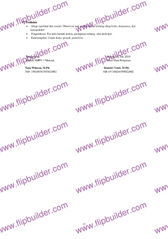 • Pengetahuan: Tes tulis bentuk uraian, penugasan tentang teks deskripsi