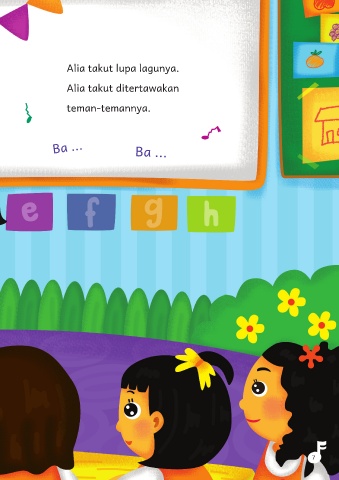 Alia takut lupa lagunya. Alia takut ditertawakan teman-temannya. Ba ... Ba ... 7