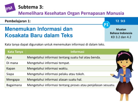 Kata tanya dapat digunakan untuk menemukan informasi di dalam teks.