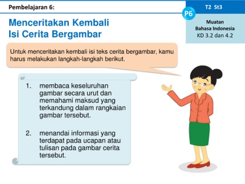 Untuk menceritakan kembali isi teks cerita bergambar, kamu
