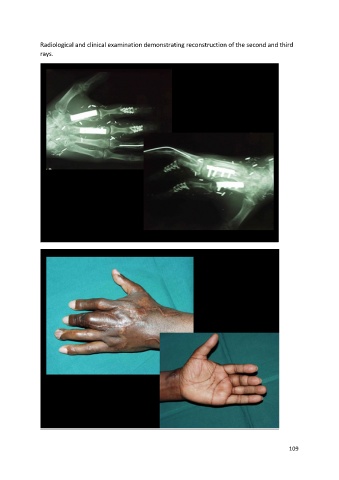 Radiological and clinical examination demonstrating reconstruction of the second and third rays. 109