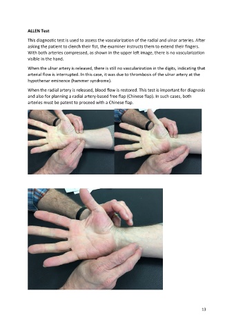 When the radial artery is released, blood flow is restored. This test is important for diagnosis