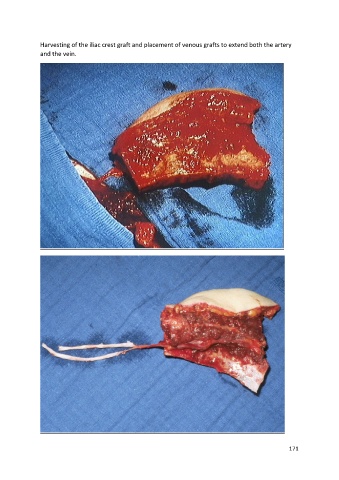 Harvesting of the iliac crest graft and placement of venous grafts to extend both the artery and the vein. 171