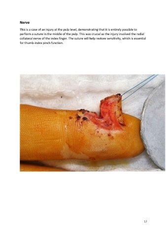 collateral nerve of the index finger. The suture will help restore sensitivity, which is essential