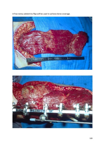 A free rectus abdominis flap will be used to achieve bone coverage. 189