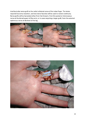 Interfascicular nerve graft at the radial collateral nerve of the index finger. The lesion