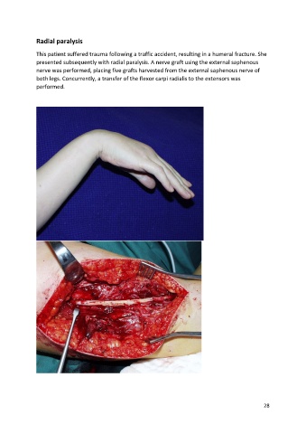 presented subsequently with radial paralysis. A nerve graft using the external saphenous