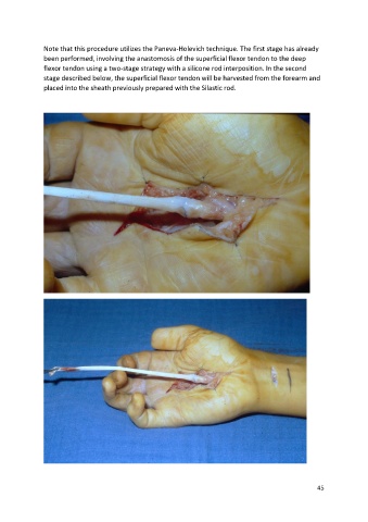 stage described below, the superficial flexor tendon will be harvested from the forearm and
