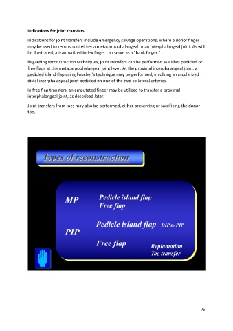 Regarding reconstruction techniques, joint transfers can be performed as either pedicled or