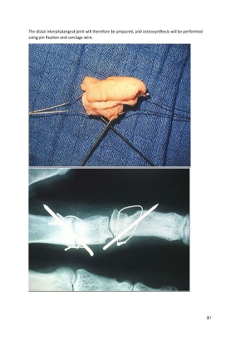 The distal interphalangeal joint will therefore be prepared, and osteosynthesis will be performed using pin fixation and cerclage wire. 87