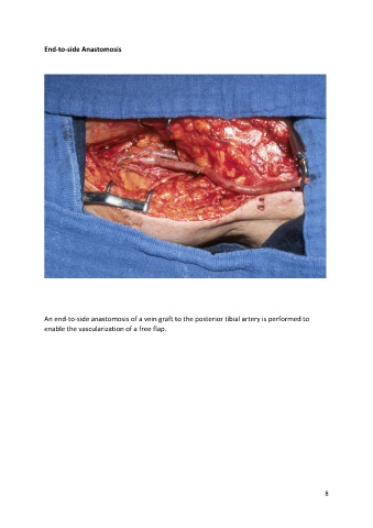 End-to-side Anastomosis An end-to-side anastomosis of a vein graft to the posterior tibial artery is performed to enable the vascularization of a free flap. 8