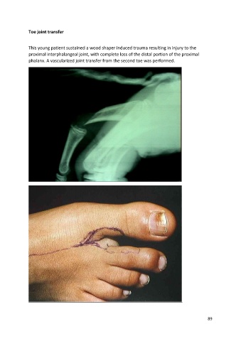 phalanx. A vascularized joint transfer from the second toe was performed.