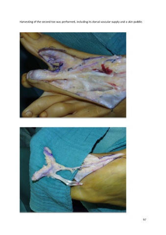Harvesting of the second toe was performed, including its dorsal vascular supply and a skin paddle. 97