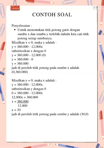 jadi di peroleh titik potong pada sumbu y adalah (30,0)