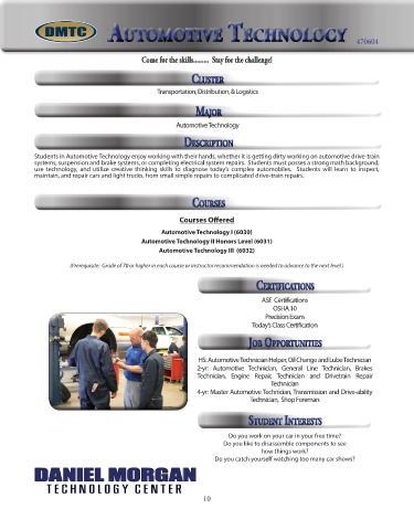 systems, suspension and brake systems, or completing electrical system repairs. Students must posses a strong math background,