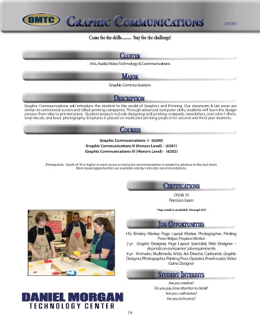 similar to commercial screen and offset printing companies. Through advanced computer skills, students will learn the design