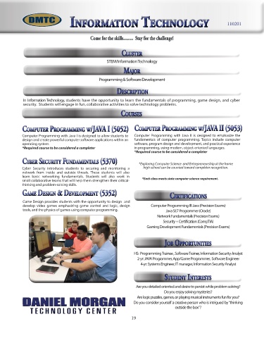 In Information Technology, students have the opportunity to learn the fundamentals of programming, game design, and cyber