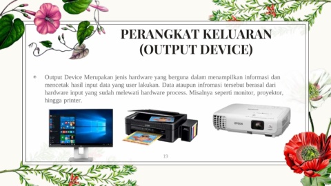 ◉ Output Device Merupakan jenis hardware yang berguna dalam menampilkan informasi dan