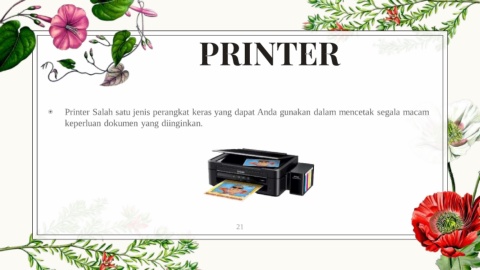 PRINTER ◉ Printer Salah satu jenis perangkat keras yang dapat Anda gunakan dalam mencetak segala macam keperluan dokumen yang diinginkan. 21