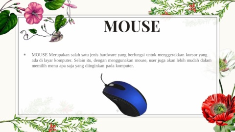MOUSE ◉ MOUSE Merupakan salah satu jenis hardware yang berfungsi untuk menggerakkan kursor yang ada di layar komputer. Selain itu, dengan menggunakan mouse, user juga akan lebih mudah dalam memilih menu apa saja yang diinginkan pada komputer. 9