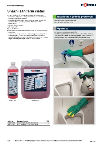 Upotreba  •  ovisno o vrsti primjene i snazi onečišćenja proizvod razrijediti sa  za čišćenje pločica (NE prirodni kamen), umivaonike, armature,
