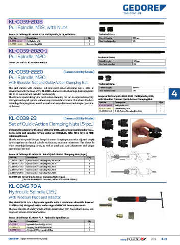 Thanks to its special design, the quick-action clamping nut can be adjusted simply by Scope of Delivery: KL-0039-2220 Pull Spindle, M20,