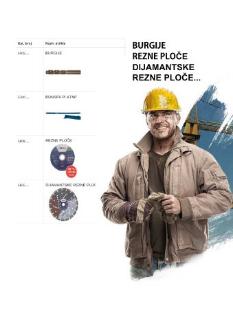 BURGIJE Kat. broj Naziv artikla 5502 ... BURGIJE REZNE PLOČE DIJAMANTSKE REZNE PLOČE... 5700 ... BONSEK PLATNE 5808 ... REZNE PLOČE 5855 ... DIJAMANTSKE REZNE PLOČE
