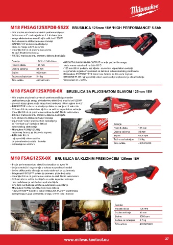 M18 FSAGF125XPDB-0X                    BRUSILICA SA PLJOSNATOM GLAVOM 125mm 18V