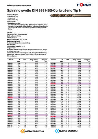 Spiralno svrdlo DIN 338 HSS-Co, bruaeno Tip N