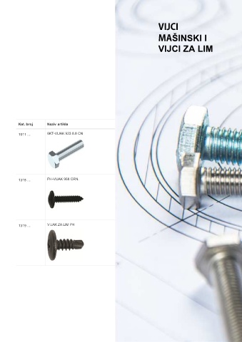 VIJCI MAŠINSKI I VIJCI ZA LIM Kat. broj Naziv artikla 1011 ... 6KT-VIJAK 933 8.8 CN 1318 ... PH-VIJAK 968 CRN. 1319 ... VIJAK ZA LIM PH
