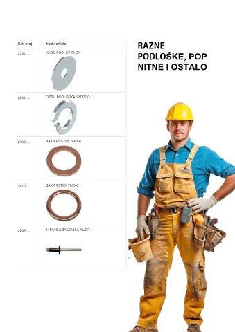 RAZNE Kat. broj Naziv artikla 2331 ... KARO.PODLOŠKA CN PODLOŠKE, POP NITNE I OSTALO 2501 ... OPRU.PODLOŠKA 127 POC. 2600 ... BAKR.PRSTEN 7603 A 2610... BAK.PRSTEN 7603 C 2708 ... 14MM SLI.ZAKOVICA AL/CR