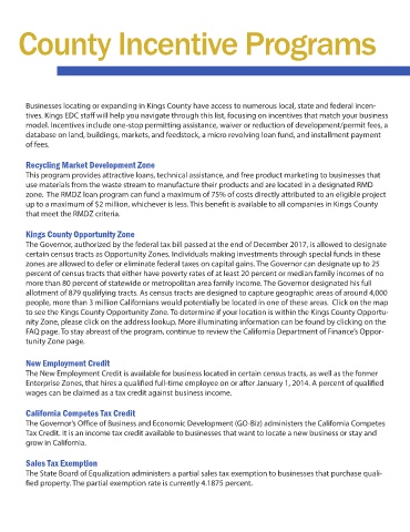 tives. Kings EDC sta will help you navigate through this list, focusing on incentives that match your business