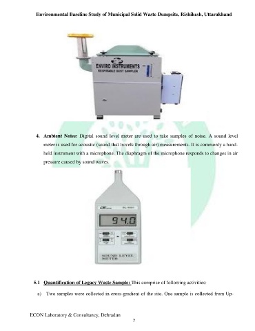 4. Ambient Noise: Digital sound level meter are used to take samples of noise. A sound level