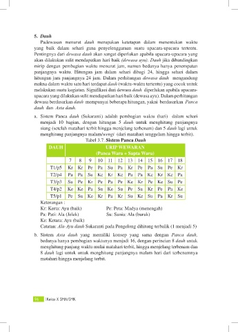 a. Sistem Panca dauh (Sukaranti) adalah pembagian waktu (hari) dalam sehari