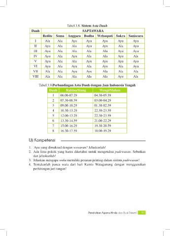 Tabel 3.9.Perbandingan Asta Dauh dengan Jam Indonesia Tengah
