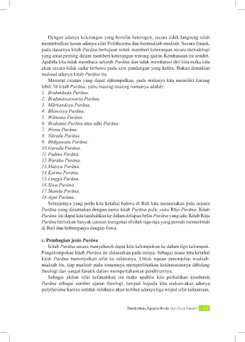 Kitab Purāna secara menyeluruh dapat kita kelompokan ke dalam tiga kelompok.