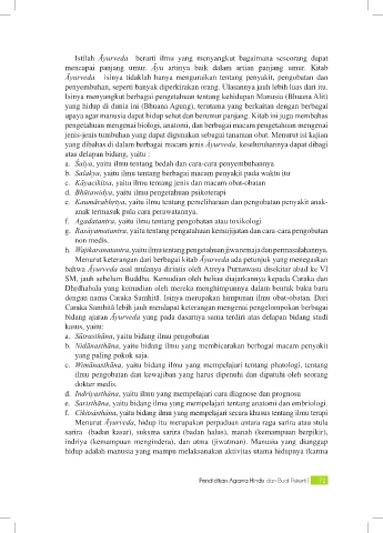 bidang ajaran Āyurveda yang pada dasarnya sama terdiri atas delapan bidang studi