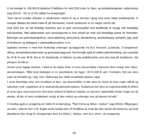 Vi har bevilget kr. 100.000 til studietur til Baltikum for hold 2002 inden for Skov- og landskabsingeniør- uddannelsen