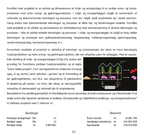 produktion med netto energi- og gødningsproduktion. I miljø- og energianlægget indgår en kombination af