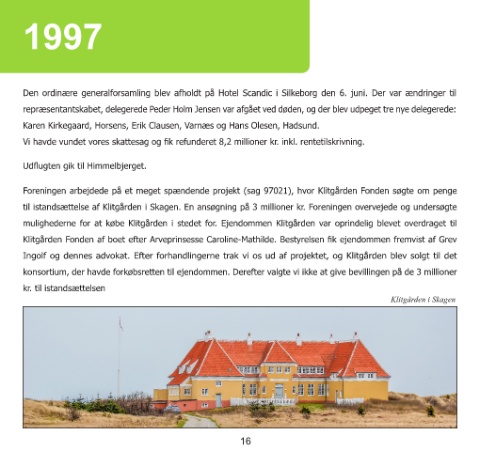 til istandsættelse af Klitgården i Skagen. En ansøgning på 3 millioner kr. Foreningen overvejede og undersøgte