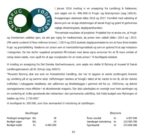 som søgte om kr. 496.000 til Frugt- og Grøntprisen (sag 16014).