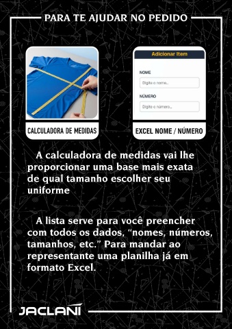 tamanhos, etc.’’ Para mandar ao